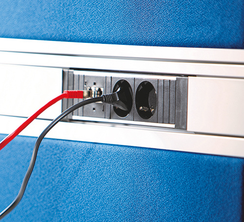 Die Steckdoseneinheit eignet sich ideal für die flexible Energie- und Datenversorgung an Arbeitsplätzen, in Trennwandsystemen und Doppelböden.